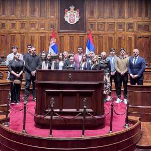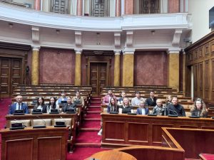 Today, students of the School of Engineering Management visited the National Assembly of the Republic of Serbia and, in the presence of the curator, had the opportunity to become more familiar with the National Assembly as an institution and cultural monument.