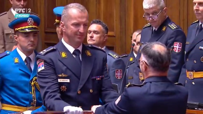 Dr Vladimir Tokalić, Lieutenant Colonel of the Serbian Armed Forces, was ceremonially presented with a sabre today at the National Assembly Hall, as part of the 68th class of General Staff Advancement at the School of National Defense, with a focus on military diplomacy.