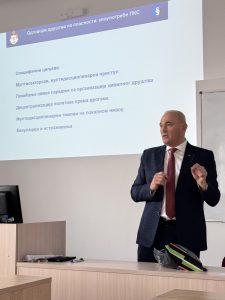 Today, the Director of the Office for Combating Drugs of the Government of the Republic of Serbia, Mr. Pekić, and his associates held an interactive lecture on the harmful effects of drug abuse. On this occasion, students had the opportunity to see for themselves how harmful drugs are in everyday life thanks to special glasses that simulate the state of consciousness of users, that is, through them the students were able to see the environment through the eyes of a person who uses drugs. The students saw how difficult it is to walk, write, etc. under the influence of drugs or alcohol. At the end of the lecture, Vice-Dean Professor Ilija Životić presented the Director of the Office with a plaque of gratitude.