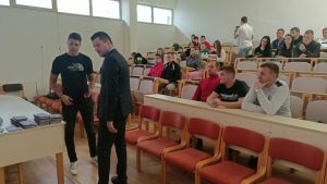 Studentima se ovom prilikom obratio nastavni i administrativni tim Fakulteta, predstavljeni su program i pravila studiranja, a zatim podeljeni indeksi i udžbenici.